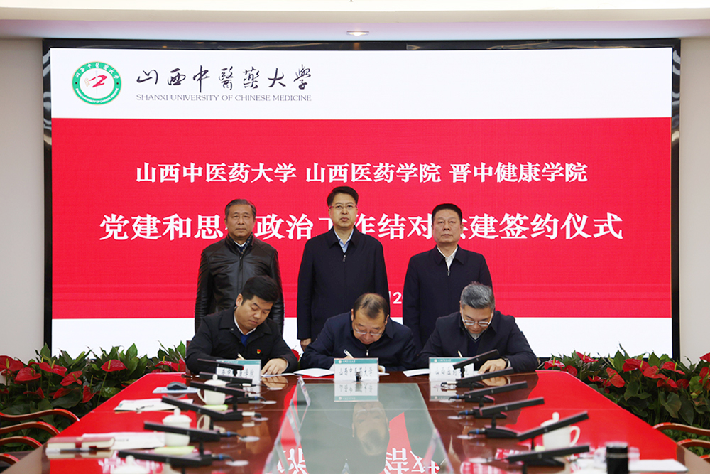 为深入贯彻落实第28次全国高校党的建设工作会议和《中共中央办公厅关于加强民办学校党的建设工作的意见》精神,认真落实省委及省委教育工委相关工作部署,12月20日上午,山西中医药大学、山西医药学院、晋中健康学院在山西中医药大学晋中校区举行党建和思想政治工作结对共建签约仪式。山西中医药大学党委书记李华荣、山西医药学院党委书记闫敬来、晋中健康学院执行校长眭建出席仪式并讲话。仪式由李华荣主持。